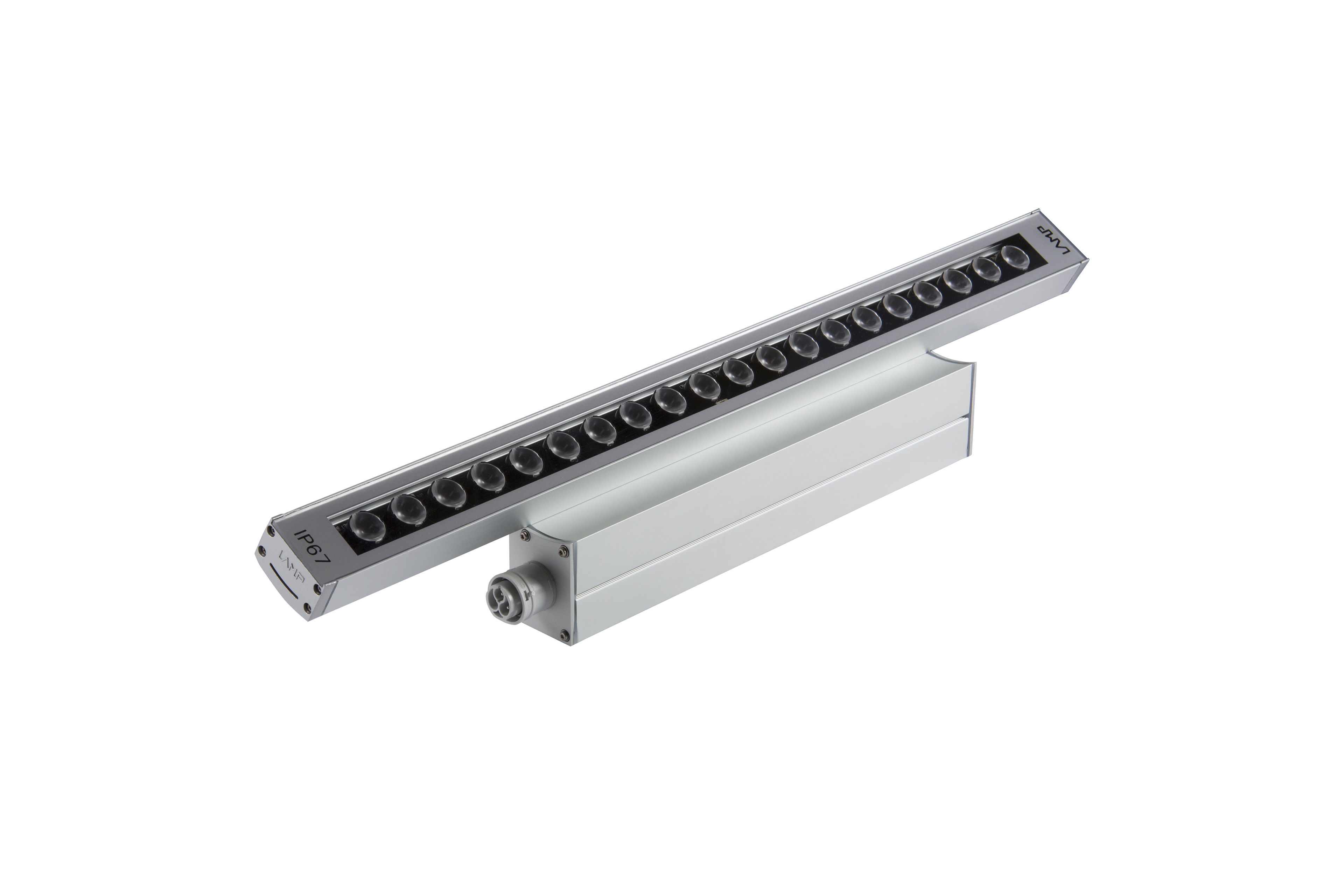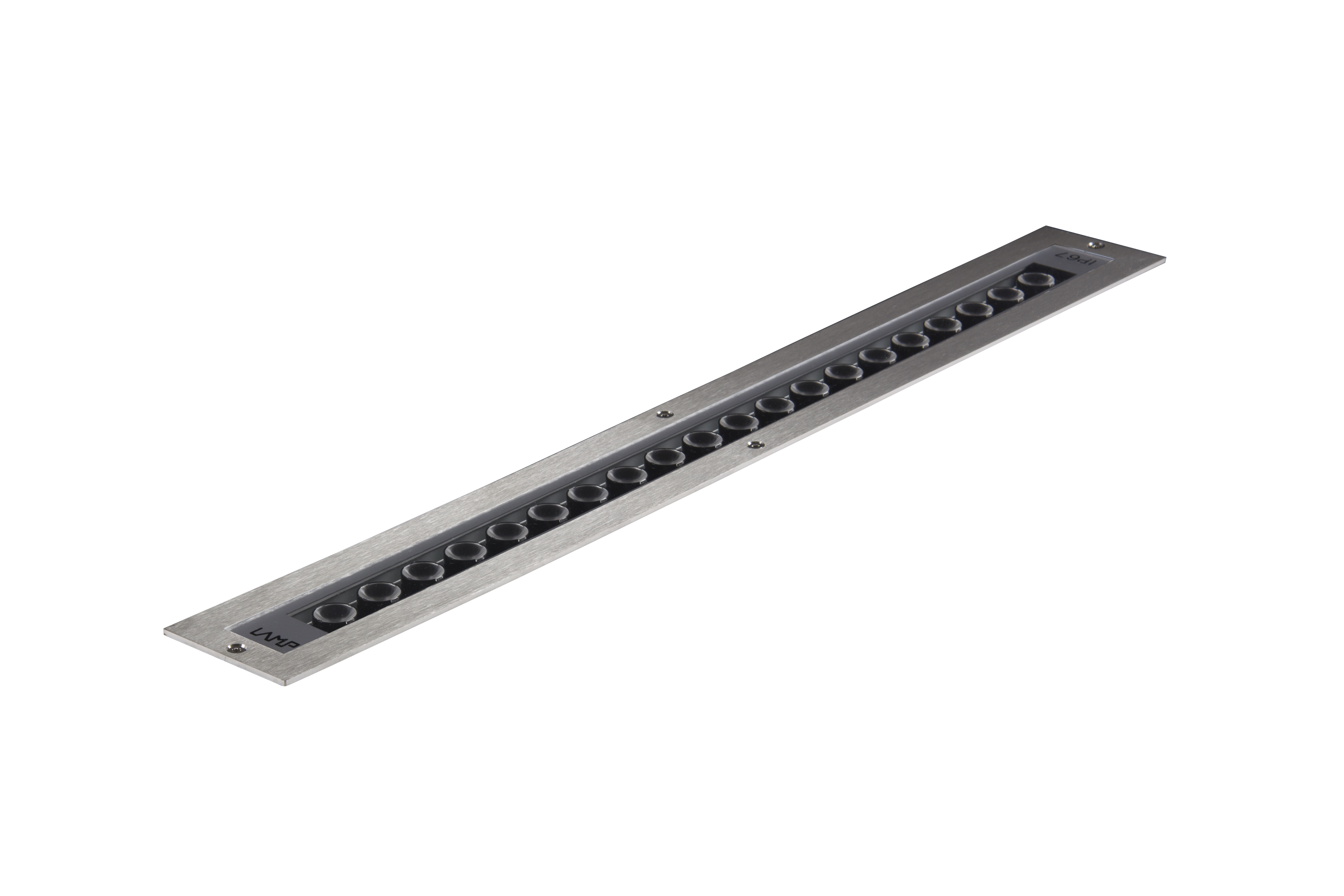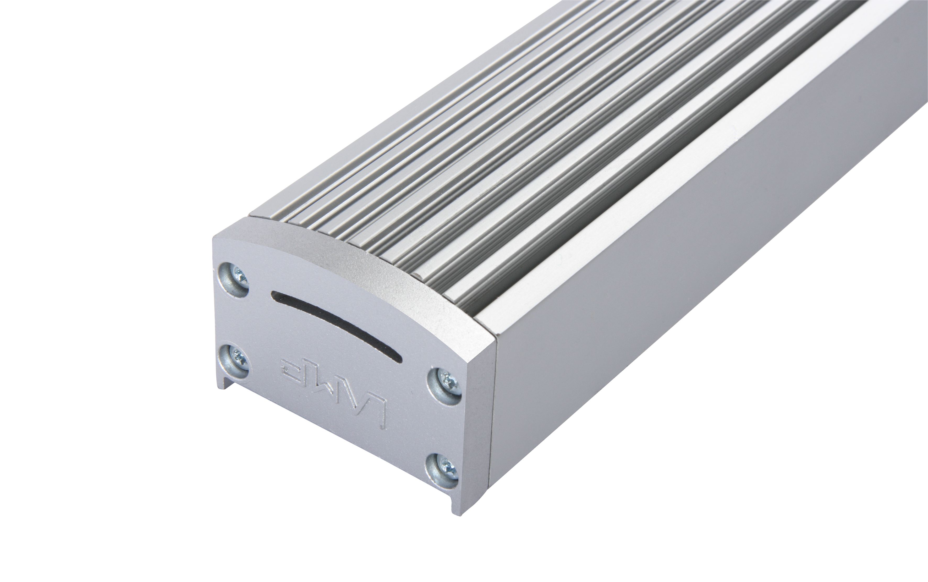 Outdoor suspended or mounted surface structure model BAULINE, LAMP brand. Made of silver anodized aluminum extrusion and end covers of lacquered aluminum injection lacquered in silver grey polyester, with decorative frontal piece of silver serigraph polycarbonate. Model for LED HI-POWER, 3000K colour temperature, CRI 80 and control gear included. With Elliptical optics. IP67, IK10 protection rating. Insulation class I. Lifetime: 83.000 L90 B10