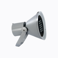 Outdoor spotlight model SHOT 290 G2, LAMP brand. Manufactured with texturized grey lacquered die cast aluminium and tempered glass, stainless steel screws and silicone gasket. Passive dissipation for thermal management. Model for LED HI-POWER, 3000K colour temperature, CRI 80 and control gear included. With street optics. IP65, IK08 protection rating. Insulation class I. Lifetime: 60.000 L80 B10. Available finishes: anthracite and textured grey